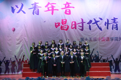 据了解,今年外文大合唱以“年代”为主题,我院十八个班级分别以80年代、90年代和00年代为主线,用“别具一格”的方式唱响各个时代“独特”情怀。在紧张而欢乐的气氛中,由我院舞蹈队带来优美又动感的开场舞正式拉开了“聆听”时代之声的帷幕。16级翻译二班为大家带来的歌曲Auld Lang Syne让观众身临其境,那些斑斓的年华、青梅煮酒的往事、过往的时光都被一一回忆;18级英西复语演唱的歌曲Nothing’s Goanna Change My Love For You则为晚会增添了一丝别样的欢乐;16级国贸二班演唱的Night Changes完美的吟唱出了一个女孩与夜晚的故事;律动的Last Chirstmas、动听的Heal The World、摇滚与抒情结合的Take To Your Heart等歌曲带给大家“惊喜连连”。高亢嘹亮的歌声、激动自信的表情、精彩繁复的形式给现场观众留下了深刻的印象。