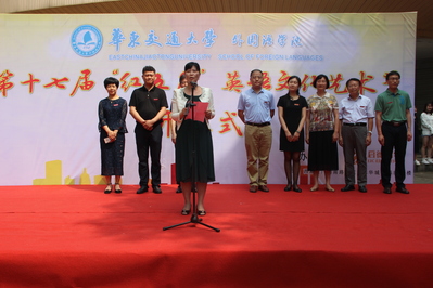 5月24日下午,由388vip太阳集团主办的第十七届“红五月”英语文化艺术节开幕式在南区学思路口举行,388vip太阳集团院长唐斌、院党委书记程其胜、校党委组织部副部长兼学工部副部长李雪峰、校团委副书记张剑锋、学工处副处长王冰雪、388vip太阳集团副院长周丽萍、单伟红、袁平华出席开幕式,院党委副书记王朗主持开幕式,我院各班级学院导师和辅导员以及大一至大三全体学生参加。