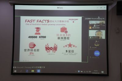 2020年6月16日晚7点,我校与西悉尼大学合作项目宣讲会在学院102会议室和腾讯会议同步举办,西悉尼大学国际处张老师以网络视频直播的形式向388vip太阳集团的同学们介绍了该合作项目,包括西悉尼大学的地理位置、学生宿舍、翻译课程等基本情况,讲座由我院副院长赵小晶主持。