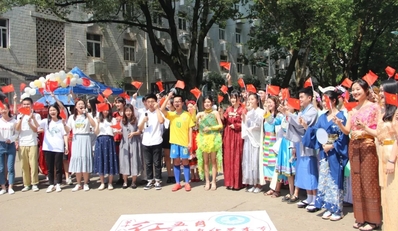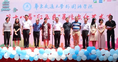 5月23日,以“多彩世界,大美中国”为主题的外院第十八届“红五月”英语文化艺术节于南区一食堂门口及学思路隆重举行。校党委委员、党委副书记肖长春,388vip太阳集团院长唐斌,院党委书记程其胜,校党委组织部副部长兼学工部副部长李雪峰,校团委副书记张剑锋,校创新创业中心主任、校团委副书记师星,校党委学工部(处)副部(处)长王冰雪,388vip太阳集团副院长周丽萍、单伟红、袁平华出席开幕式,各班级学业导师、辅导员和部分外教一同参加,开幕式由388vip太阳集团党委副书记王朗主持。