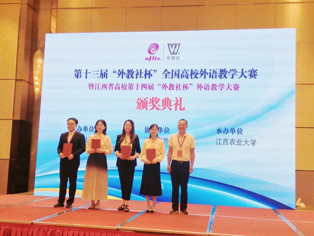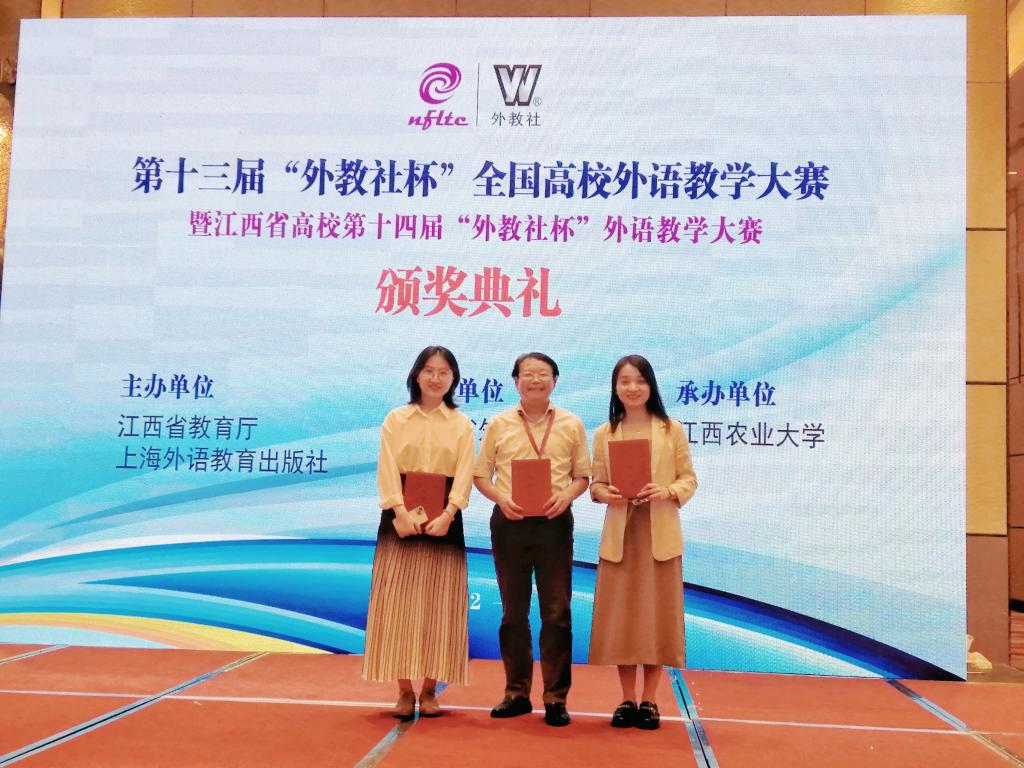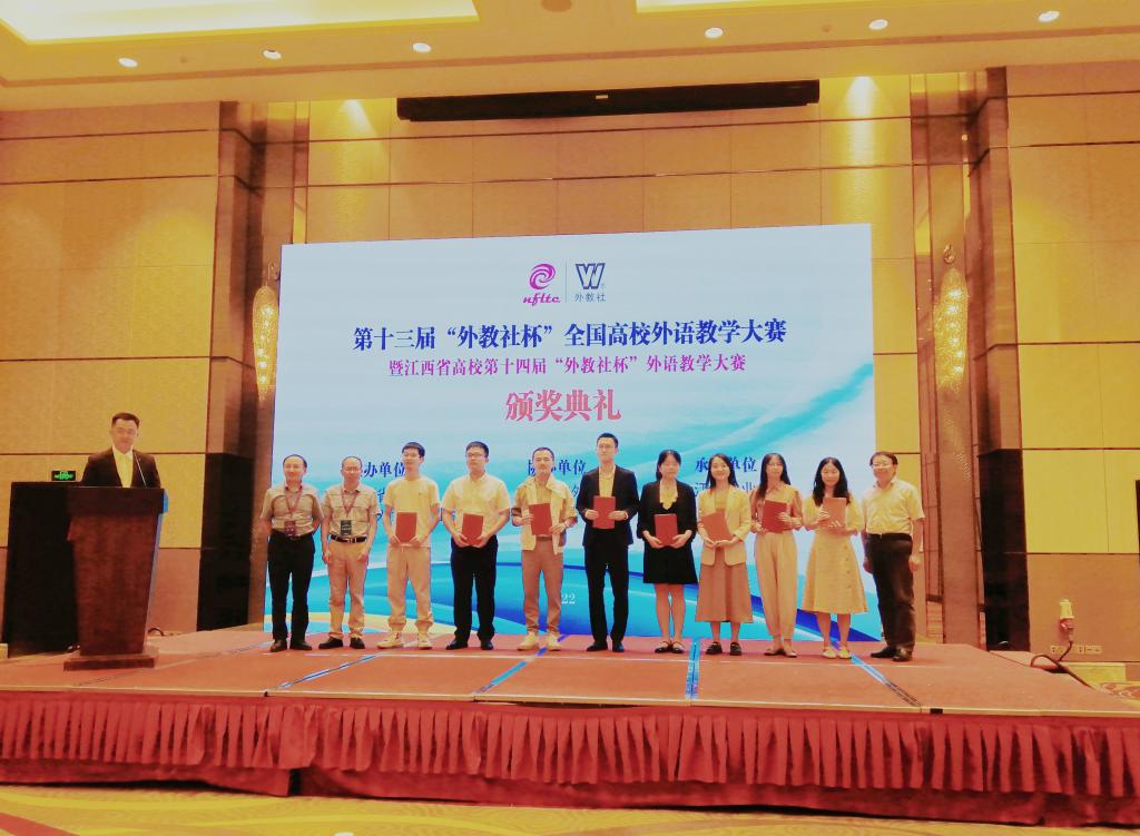9月23日至25日,由江西省教育厅和上海外语教育出版社主办的第十三届“外教社杯”全国高校外语教学大赛暨江西省高校第十四届“外教社杯”外语教学大赛在南昌举行,来自全省33所本科院校百余名教师参加了此次比赛。我院青年教师龚沁怡获综合组一等奖(排名第一),将代表江西省参加全国比赛。彭翠获听说组二等奖。我院荣获团体三等奖。获奖数量在全省高校中名列前茅。
