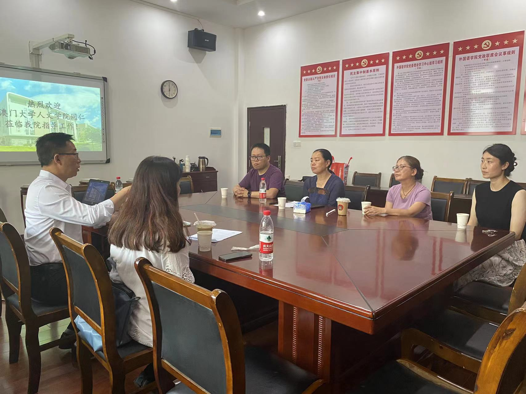 7月12日,澳门大学人文学院李德凤副院长、李丽青助理院长到访我院,院行政负责人赵小晶副院长、语言加工与翻译认知实验室石进芳主任接待了来访,翻译系、葡语系相关人员参加。