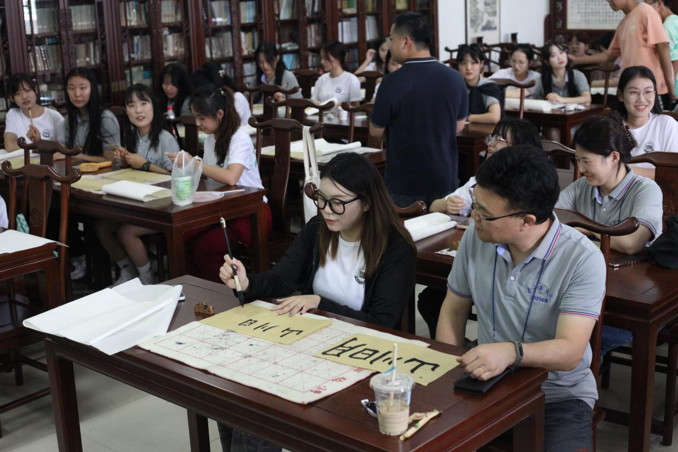 之后的行程中,我院志愿者积极与韩国青年以书法促交流,带领他们领略阴阳变化之美;一对一带领韩国团学生参观我校国家重点实验室,给予热情全面的VR技术等讲解,给韩国团学生带来别开生面的科技乐趣;26名志愿者教授结对伙伴中华传统棍术,展现中华武术独特魅力;他们结伴走进充满烟火气息的万寿宫夜市,在志愿者们的倾情讲解下,韩国团学生得以欣赏独特的豫章风情。