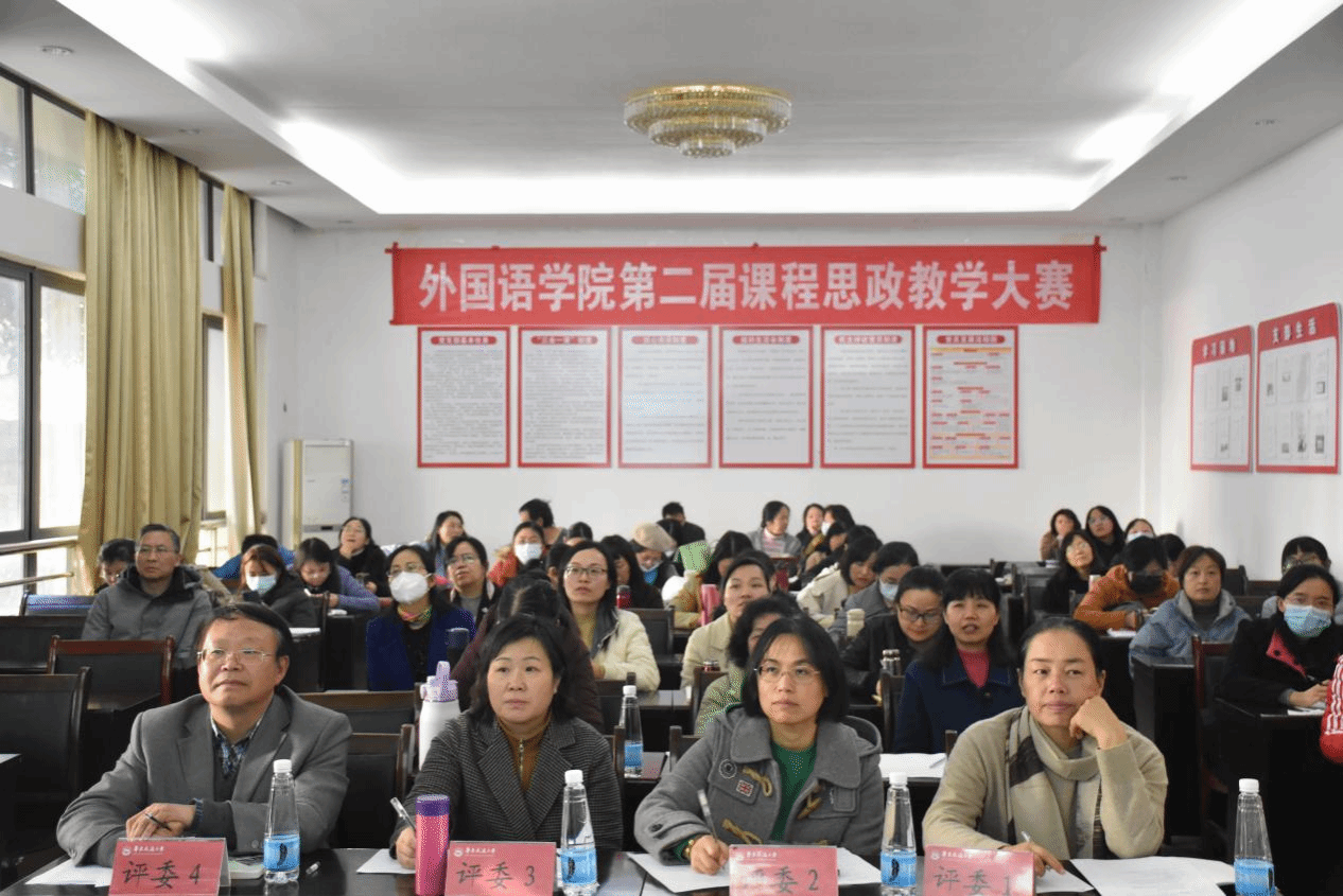 为深入学习贯彻习近平总书记关于加快建设教育强国的重要讲话精神,贯彻落实立德树人根本任务,发挥课程育人功能,推进外语学院课程思政建设,不断提升教师课程思政教学能力、夯实教学基本功,由外语学院分工会组织的“388vip太阳集团第二届课程思政教学大赛”于12月14日下午在外语学院102会议室举行。本次课程思政教学大赛由院分工会主席朱爱琴主持,赵小晶、单伟红、陆秀英、袁平华、何善秀、孟冬梅、黄珊担任评委,龚沁怡、刘星、吴秋芳、陶国潇、吴让越、朱佳琪六位老师参赛。
