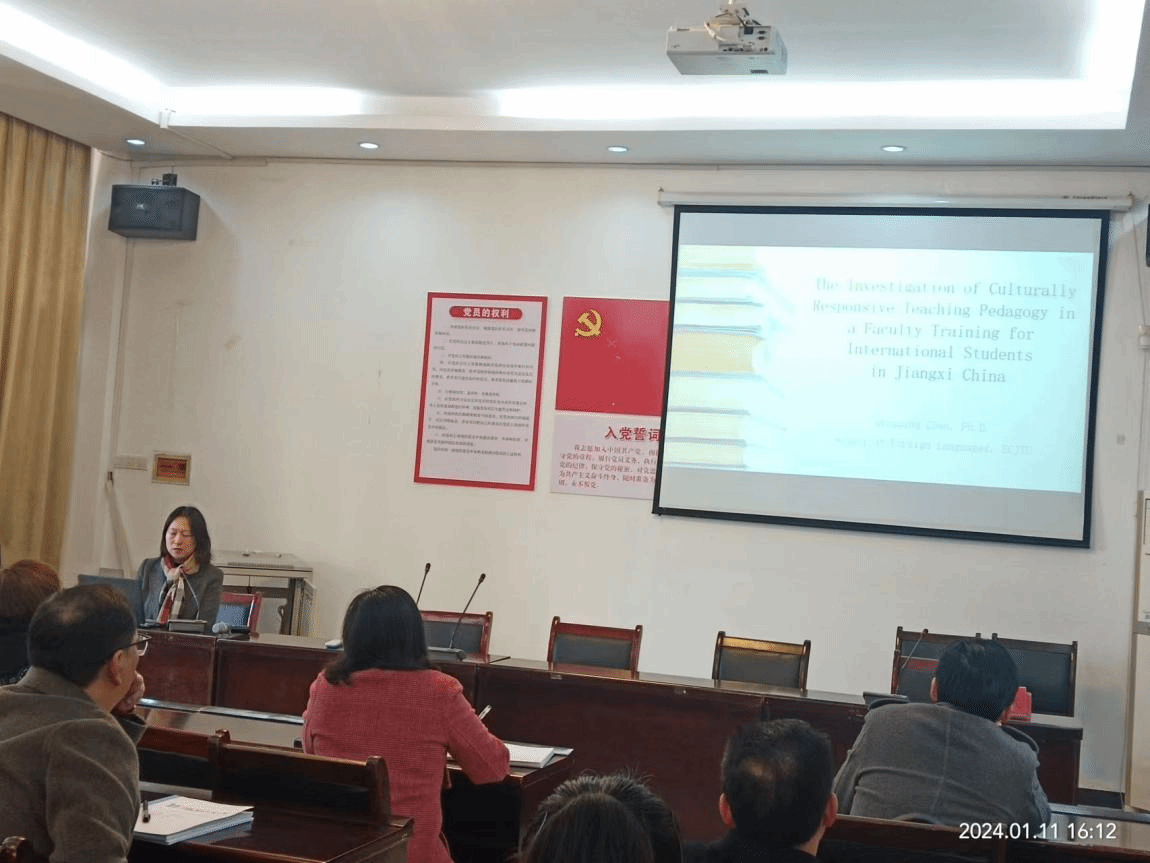 陈蜻蜻博士详细地介绍了自己基于文化响应教学下的来华留学项目师资培训的实证性研究。