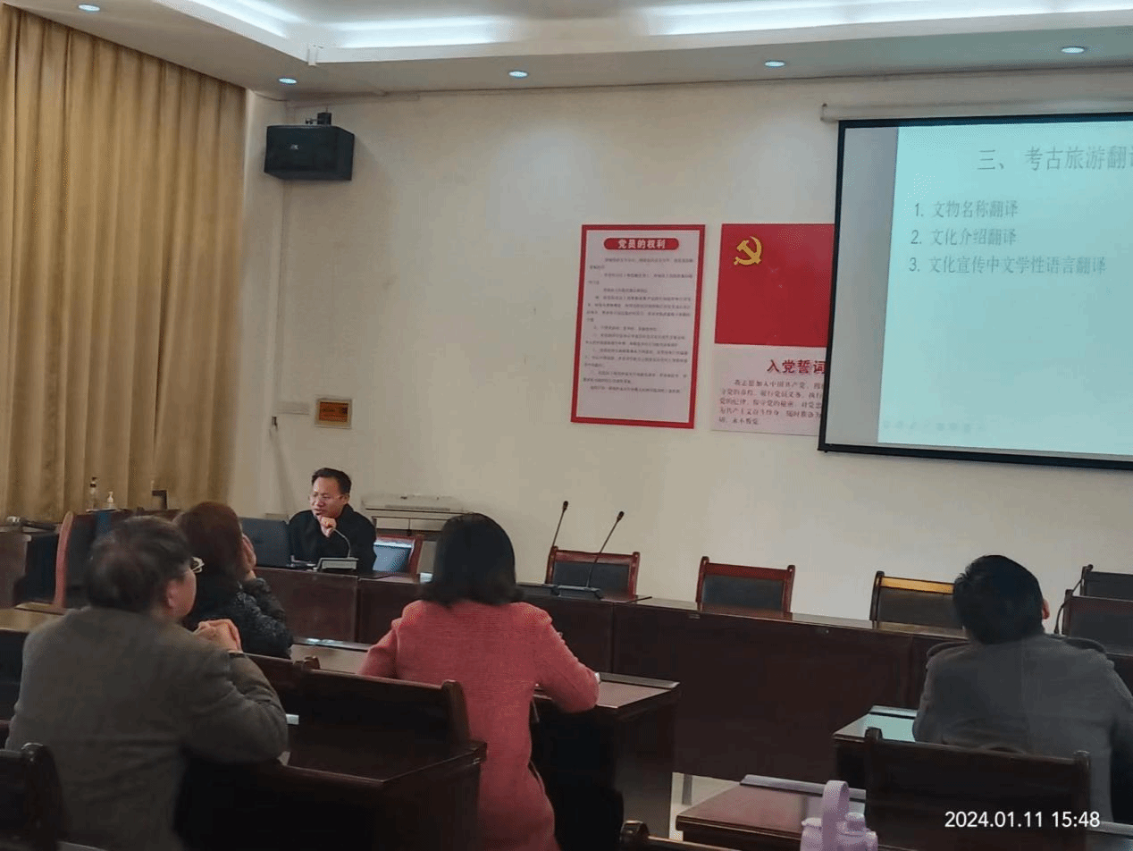 首先,廖为应副教授在“译事小叙”的讲座中介绍了他近年来经营南昌译道翻译服务有限公司时所做的科技论文、新闻外宣、考古旅游翻译等实践项目,同时也谈到了他多年翻译教学中的一些思考和感悟。