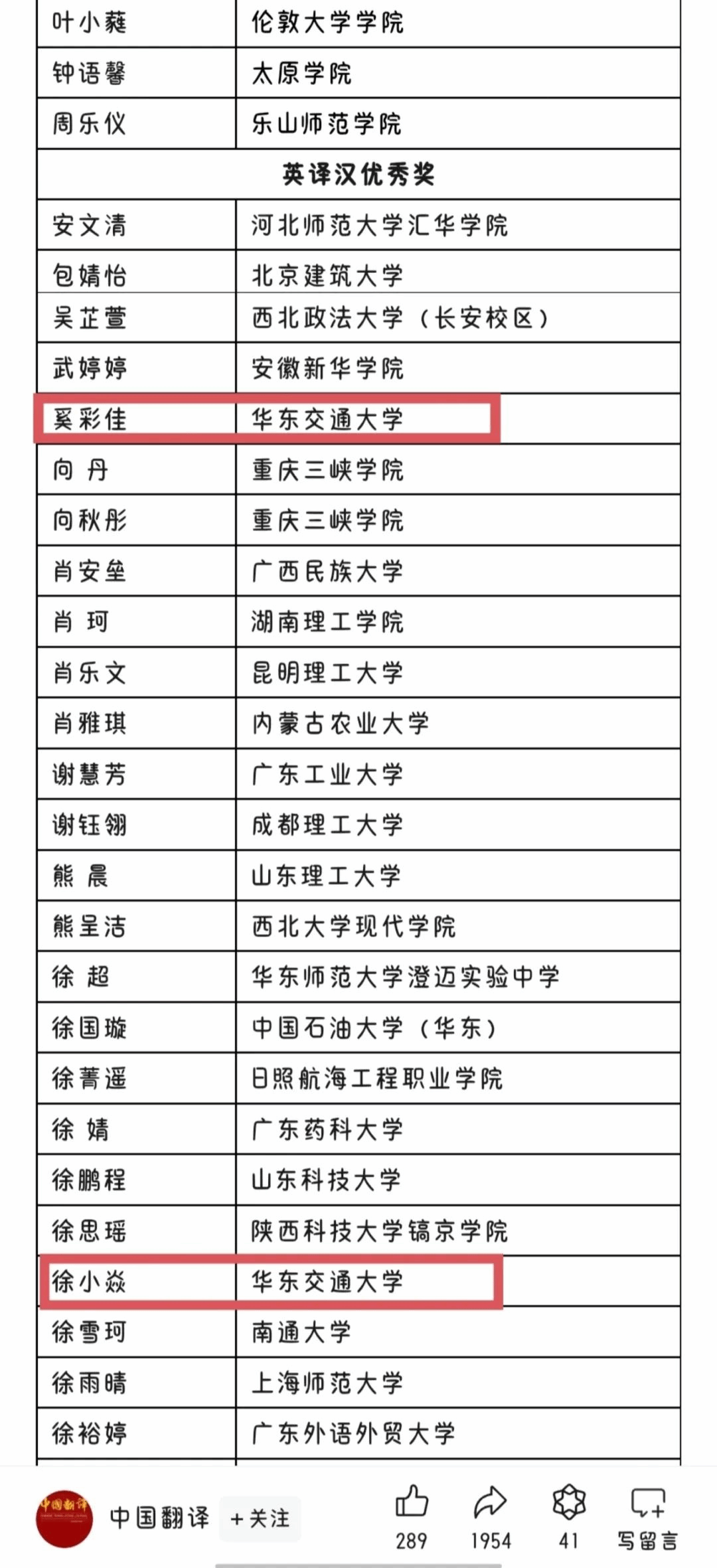 2024年第三十六届韩素音国际翻译大赛结果近期揭晓,我院奚彩佳、徐小焱获英译汉优秀奖。