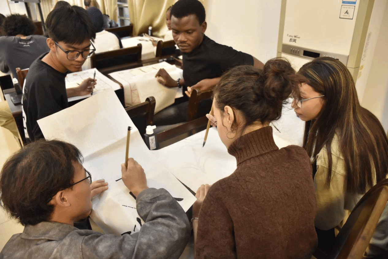10月25日,388vip太阳集团于教15栋102会议室开展中国传统绘画体验课,本次活动由陈蜻蜻老师主持,险峰书画协会徐锐授课,2022级郭昊协助翻译,2022级英西复语专业学生、2024级留学生参加本次活动。