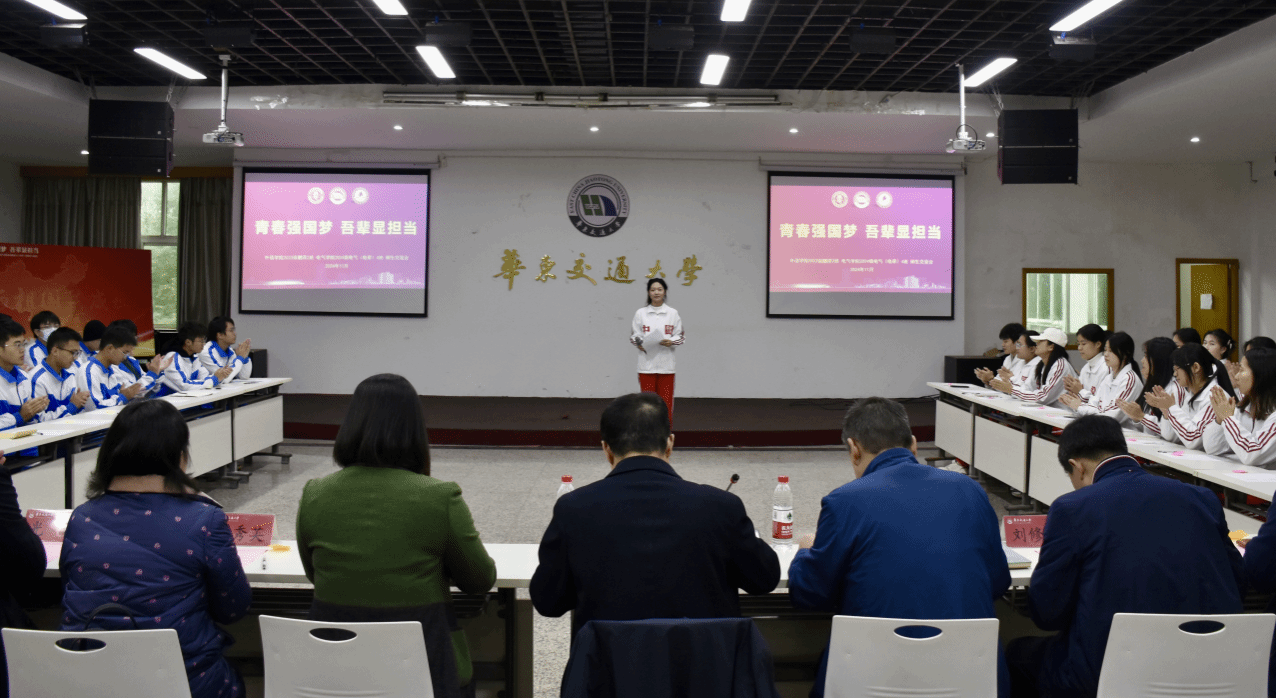 为落实立德树人根本任务,加强大学生思想政治教育,搭建校领导与学生沟通平台,了解学生所思所想所盼,388vip太阳集团和电气与自动化工程学院于11月25日下午在南区天佑会堂联合开展“青春强国梦,吾辈显担当”主题班会。副校长杨辉,外语学院院长陆秀英、党委书记薛先庆、党委副书记光辉,电气学院党委书记赵敏、党委副书记刘修财,辅导员郑伟、夏圣伟、王伟峰出席,外语学院翻译2023-2班和电气学院电气(电牵)2024-4班全体学生参加。