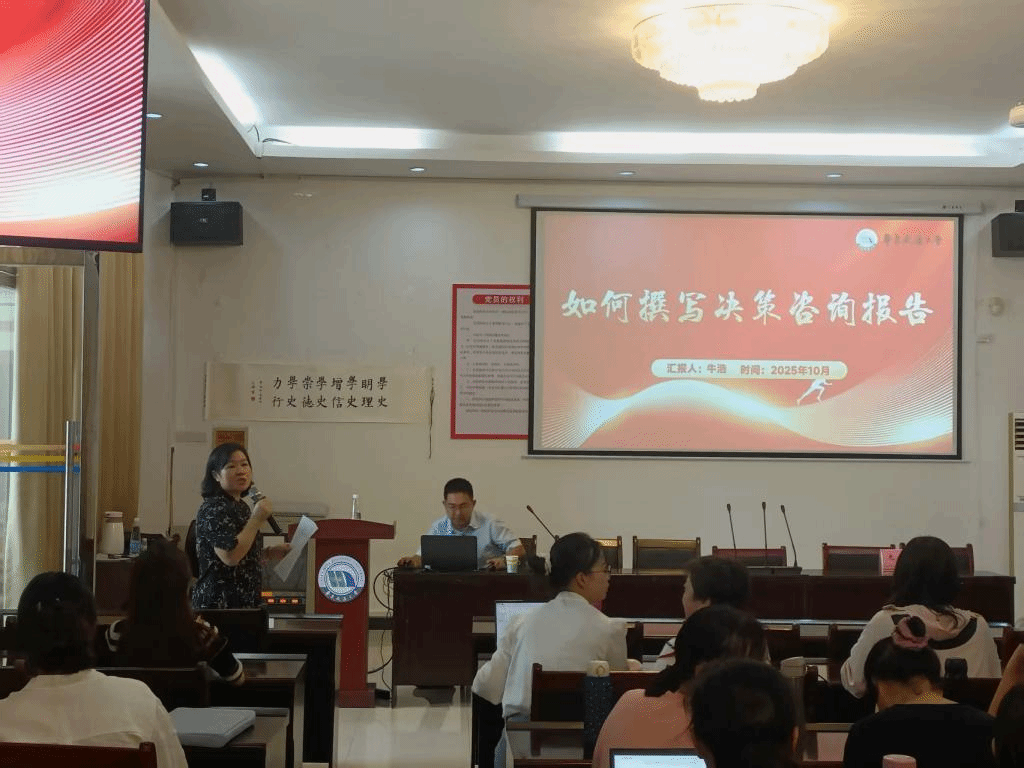 10月14日,党办校办牛浩同志做客388vip太阳集团红“译”站讲坛,以《如何撰写决策咨询报告》为题开展辅导讲座。