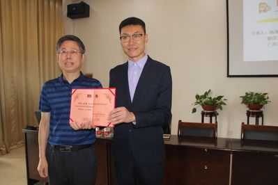 报告会的最后,院党委书记程其胜为曲涛老师颁发聘书,聘任其担任我校硕士研究生校外指导老师。此次报告会邀请我院优秀学子返校讲学,一来发挥了朋辈教育的引导的作用,二来充分展现了我院扎实的育人实效,我院翻译专业人才培养水平和科研水平逐年提升。