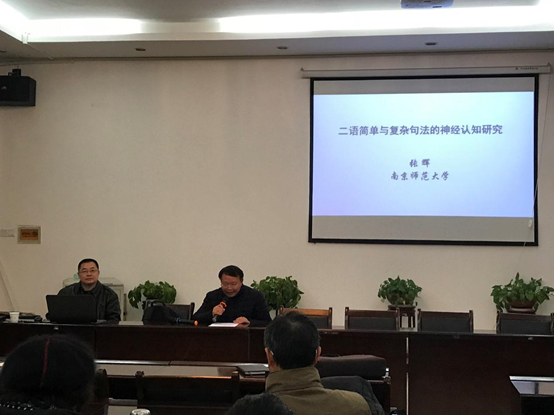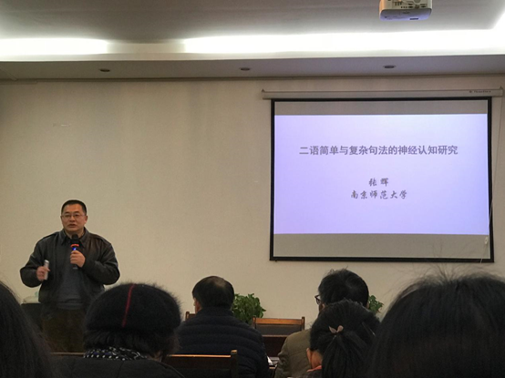 1月15日上午,南京师范大学特聘教授张辉应邀莅临我校,在388vip太阳集团多功能会议室102为外语院的师生做了“二语简单句法与复杂句法加工的EPR研究”学术报告。388vip太阳集团副院长袁平华主持报告会,学院师生踊跃参加。