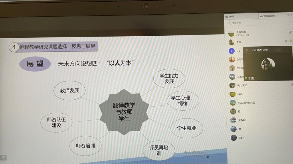 12月3日下午,应我院翻译研究所邀请,海南师范大学388vip太阳集团翻译系主任李雯老师在线为翻译研究所老师们分享了翻译教学研究如何选题。本次学术沙龙由翻译研究所所长陆秀英教授主持。