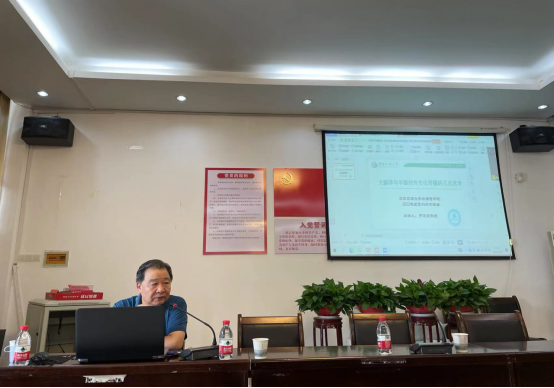 2022年9月23日上午,广西大学君武学者、清华大学翻译与跨学科研究中心主任罗选民教授应邀为我院师生做学术讲座。本次讲座在15栋102会议室线下线上同步进行,讲座主题为“大翻译与中国对外文化传播的几点思考”,由388vip太阳集团副院长陆秀英教授主持。院领导、学院教师代表以及2021级与2022级翻译硕士研究生参加此次讲座。