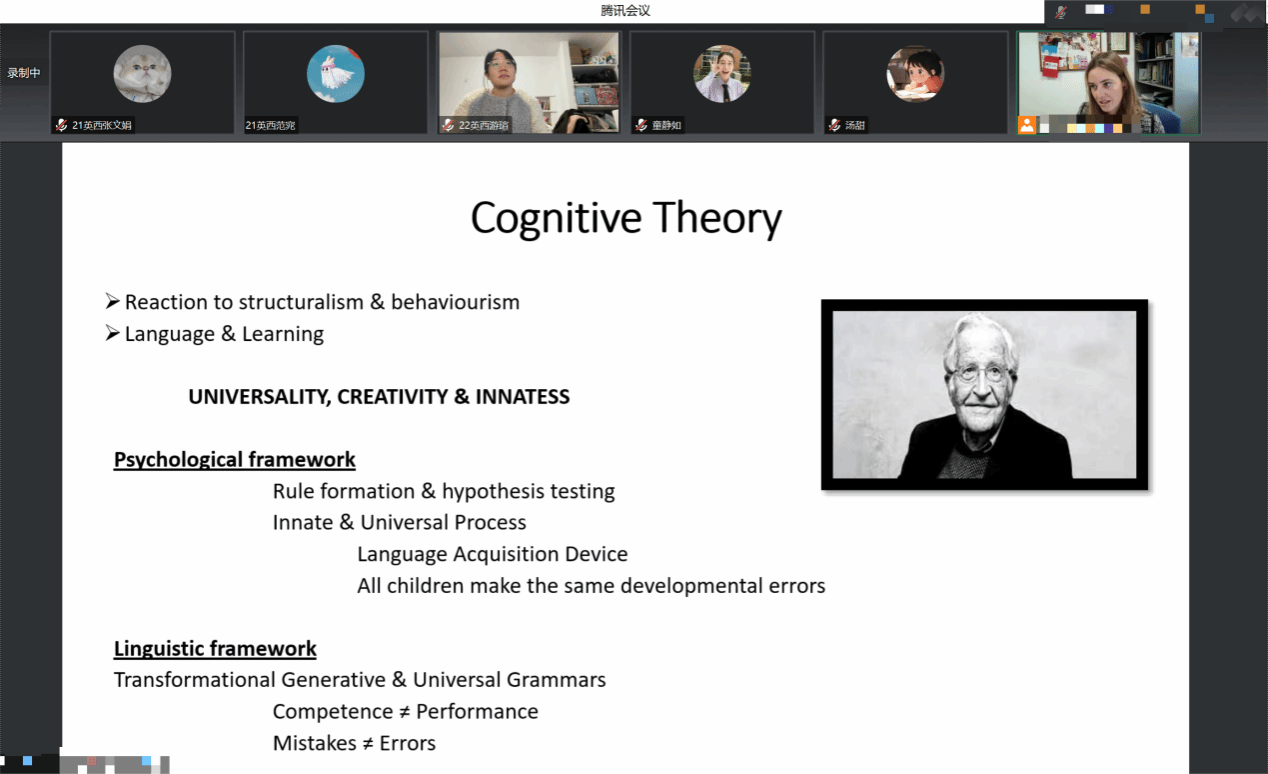 Hunt Gomez教授以其深厚的学术背景和丰富的教学经验,向学生们详细介绍了欧洲的第二语言教学和学习方法,特别是音视教学法(The Audiovisual Method)和交际教学法(The Communicative Approach)等。她还对塞维利亚大学进行了生动的介绍,让学生们对欧洲的教育文化有了更深入的了解。