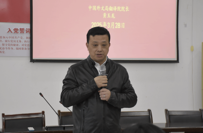 3月28日下午,中国外文局翻译院院长黄玉龙一行来校交流并做专题讲座。中国外文局翻译院院长黄玉龙、计财部二级巡视员杨青、办公室主任孟津,太阳集团副校长黄志超、388vip太阳集团院长陆秀英、副院长单伟红、李星和师生代表参加了座谈会。会议由388vip太阳集团院长陆秀英主持,双方结合国家战略需求就外语学科发展前景与新时代国际传播交流人才培养展开讨论。