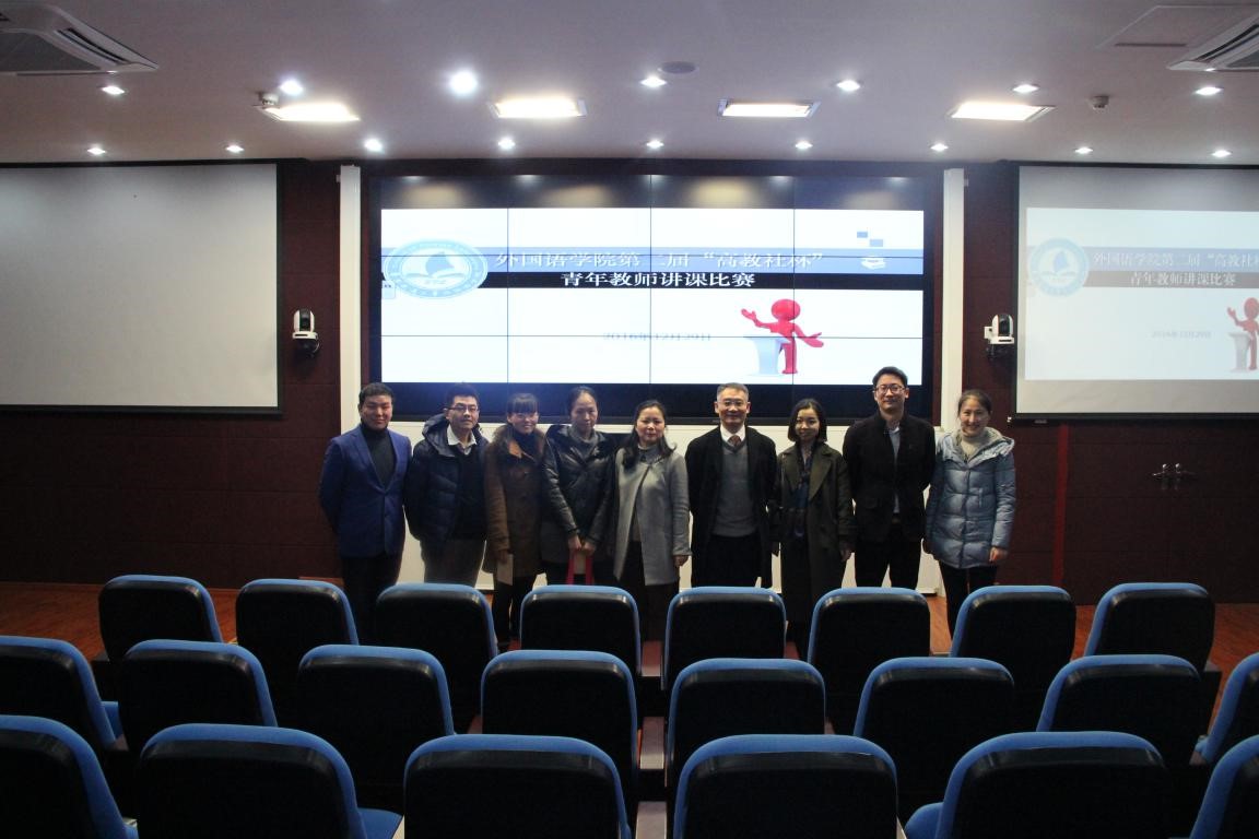 388vip太阳集团第二届“高教社杯”青年教师讲课比赛与12月29日下午两点在图书馆多功能录播教室隆重开启,来自学院三个教研室的九位青年教师在讲台上展开了激烈角逐。评委由七位专家和资深教师组成,包括教务处汪琳媛副处长、理学院刘二根教授、经管学院顾丽琴教授、人文学院陈晓江教授、388vip太阳集团唐斌院长、何善秀教授和英语专业主任李星老师。九位选手在讲台上或激情澎湃、或娓娓道来展现各自的风采,经过三个半小时的较量,付添爵老师脱颖而出,以96.8的高分获得了第一名。比赛结果如下: