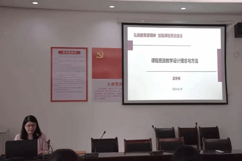 为学习贯彻习近平总书记关于学校思政课建设重要指示和全国教育大会精神,落实立德树人根本任务,9月19日下午388vip太阳集团全体教职工于教15栋102会议室开展“课程思政教学设计理念与方法”专题教学研讨会。会议由院党委书记薛先庆主持,孟冬梅老师主讲。