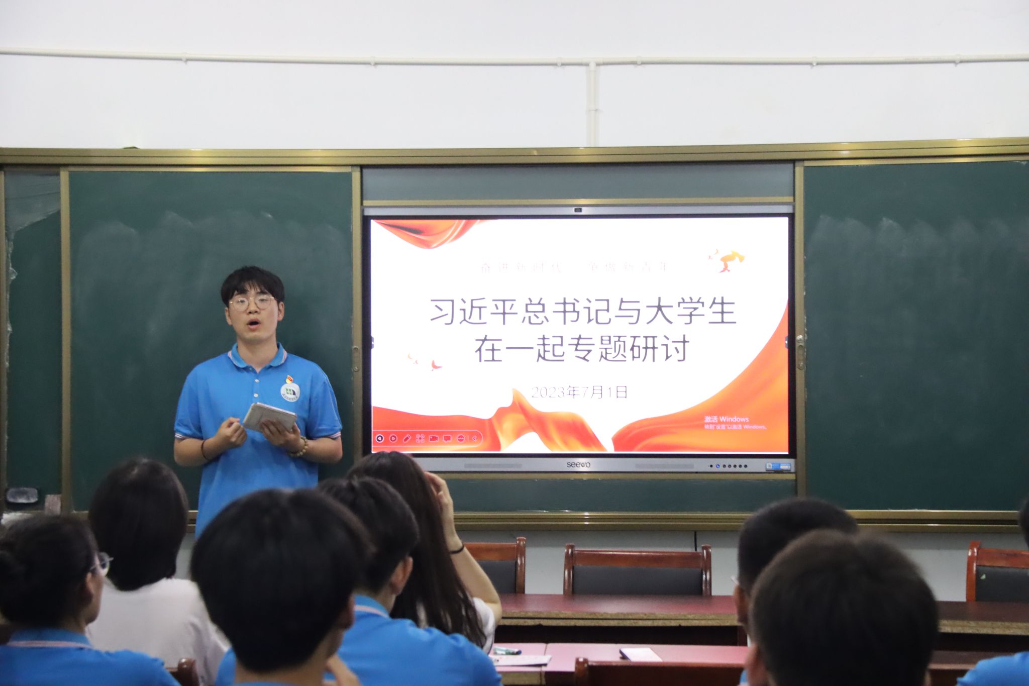 7月1日,于建党102周年之际,在外语学院学工办副主任、团委副书记熊弯老师与电气学院学工办副主任、团委副书记夏圣伟老师的组织下,外语学院与电气学院联合举办学生骨干“习近平总书记与大学生在一起”专题研讨会