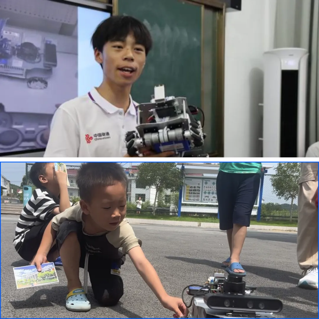 此外,汪灶瑞同学向小朋友们展示并介绍了我院同学研发的智能小车,讲解相关原理及基本构成。从“大脑”——主控板,到“眼睛”——深度相机和激光雷达,再到“脚”——麦轮,生动形象地向小朋友们描述了小车的构成,激发了孩子们对于人工智能的兴趣,在心里埋下了一颗科创的种子。