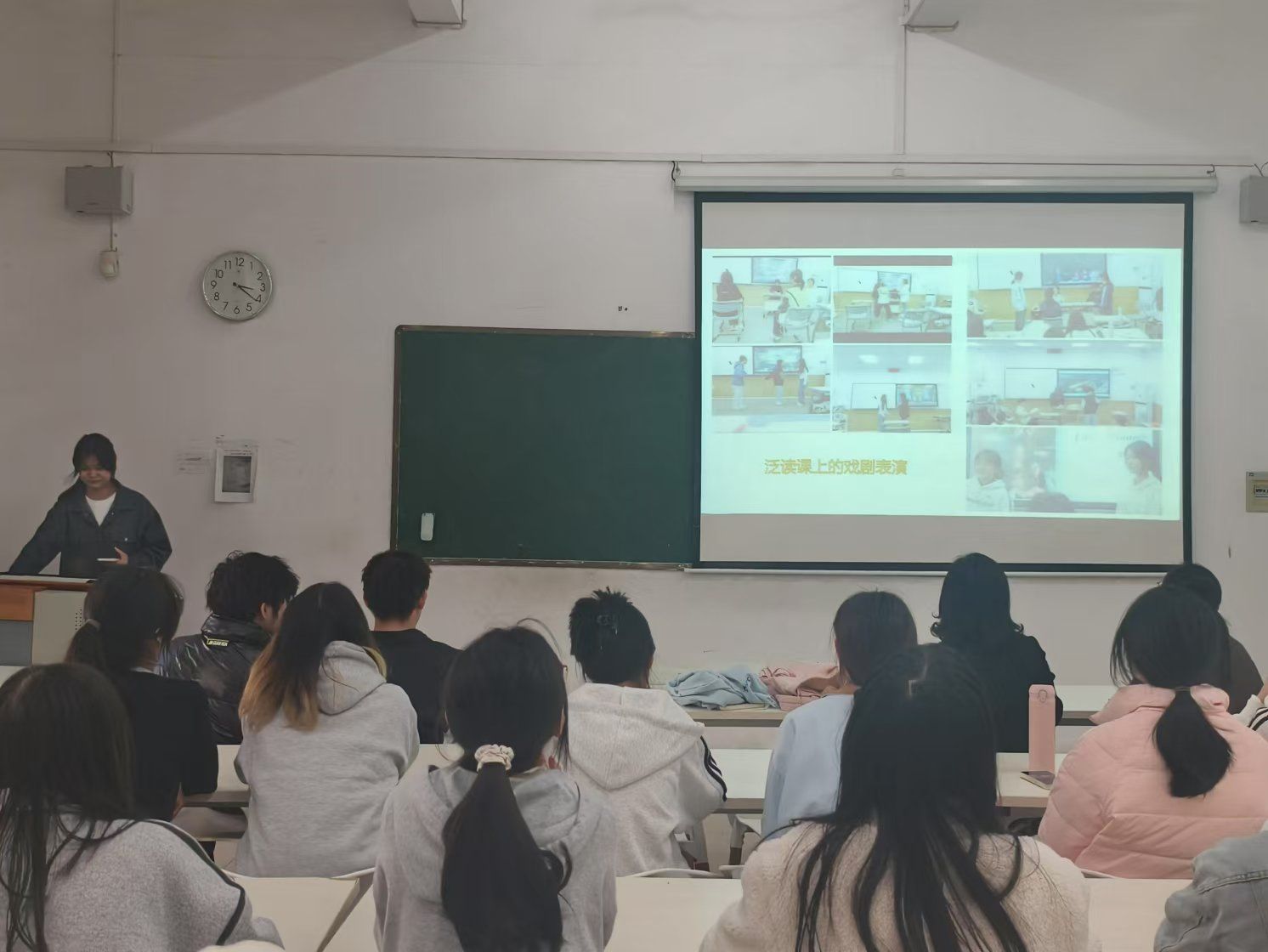 首先,刘欣然从班级人员构成、班级建设成果及班级风貌出发,详细地为大家汇报了翻译2024-2班近3个月来班级情况。一群新生团结而成的翻译2班,于本学期的教学和课外活动中收获硕果累累。他们在军事训练中激情澎湃、挥洒汗水,在八一纪念馆回顾先辈的功勋卓著、立下继往开来的志向,在英语泛读和口语课堂上表演话剧和进行演讲,展现青春的神采飞扬…