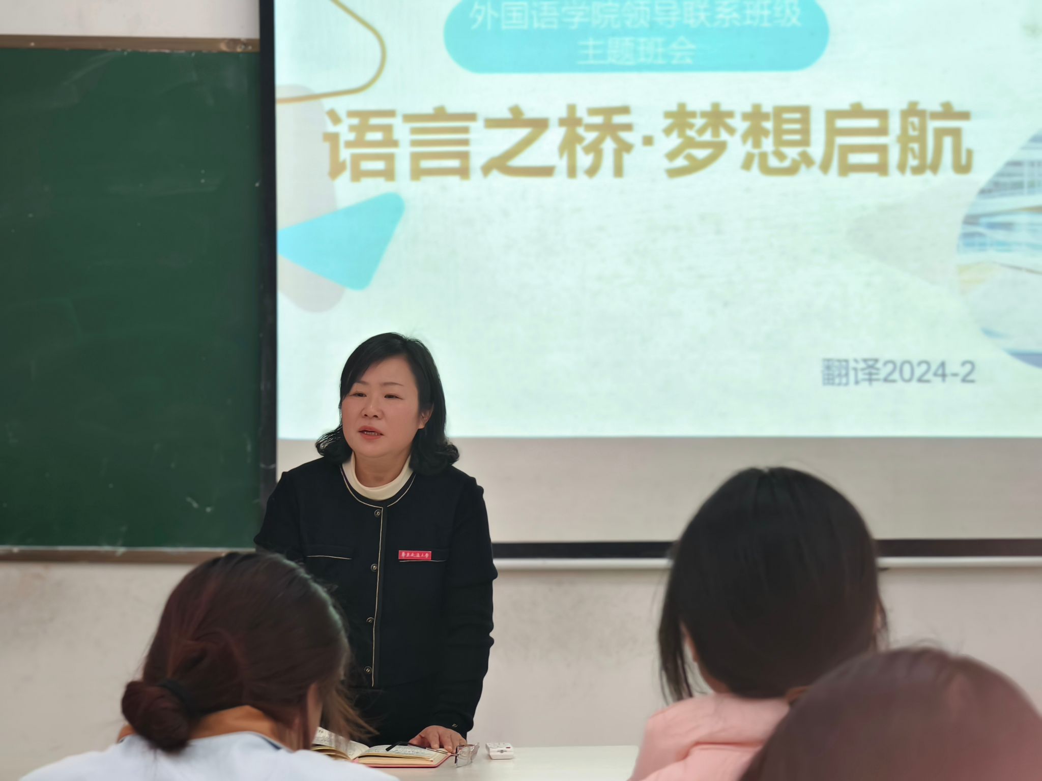 为帮助同学们适应大学学习生活,增进院领导与同学们的沟通交流。 11月29日下午,388vip太阳集团召开领导联系班级主题班会,院长陆秀英、辅导员徐蒙蒙出席,翻译2024-2班全体同学参加,班长刘欣然主持。