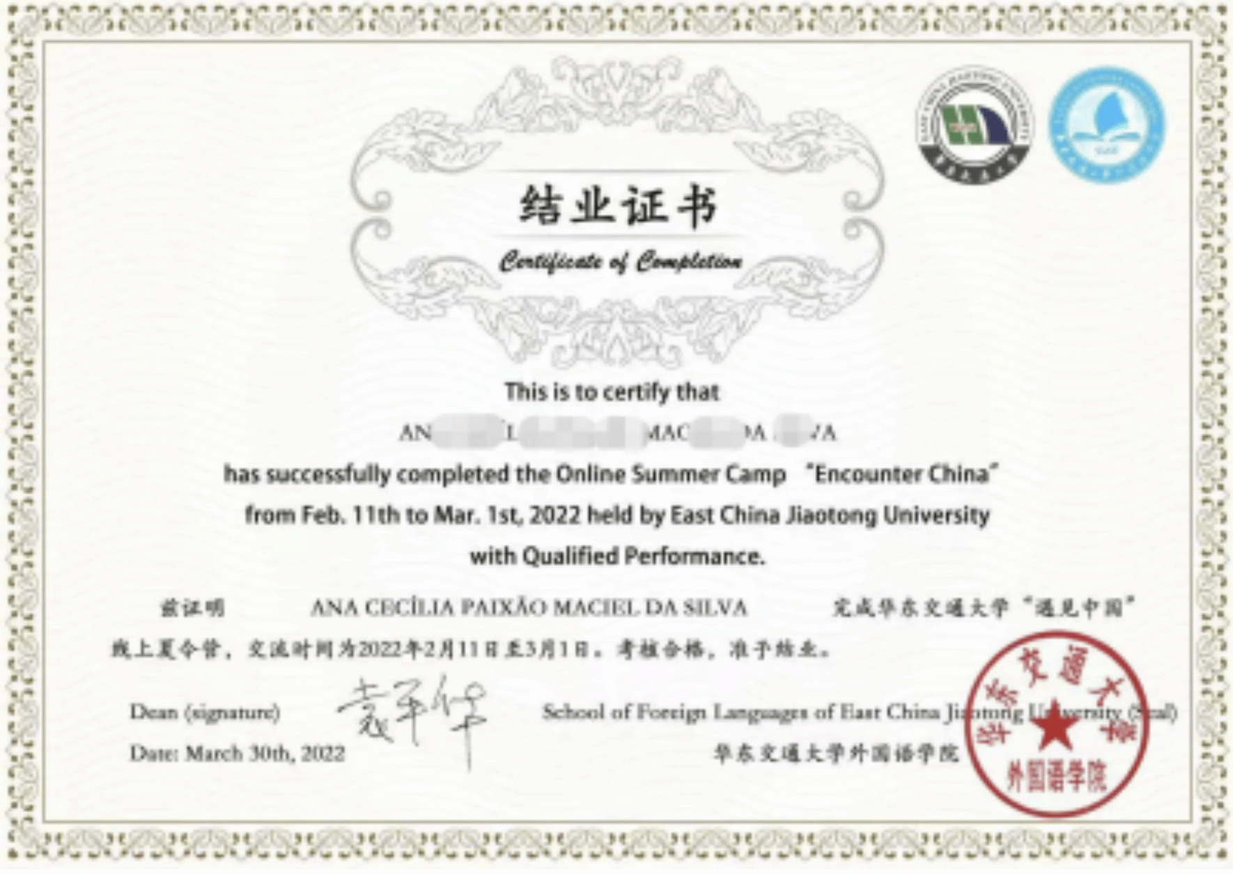 Those who have completed the course and assessment tasks will be issued certificates from ECJTU University.