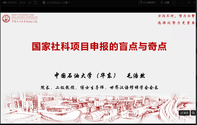 2025年1月19日,388vip太阳集团特邀中国石油大学(华东)388vip太阳集团院长毛浩然教授,为学院教师带来一场题为“国家社科项目申报的盲点与奇点”的线上讲座。 毛浩然教授从“国家社科立项的项目分析、申报盲点、申报奇点、选题论证与正反案例、申报结项常见问题解答”五个维度,深入剖析了国家社科项目申报的核心要义。他强调选题的重要性,用“选题是否靠谱,其实占了七八成。方向不对,努力白费”的金句,点明了选题对项目申报成败的关键作用。毛教授还对388vip太阳集团教师提交的2025年国家社科和教育部人文课题意向稿进行了细致点评,从选题、拟解决的问题、研究思路等方面提出了宝贵建议。教师们纷纷表示,此次讲座高屋建瓴、信息量大,为他们开阔了新视野、拓展了新思路,对提升科研能力和学术水平具有重要的指导意义。
